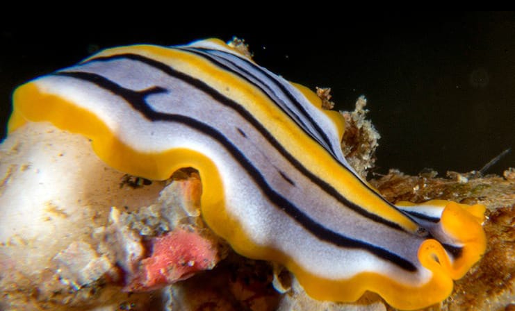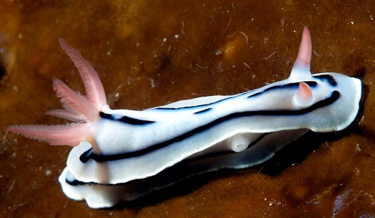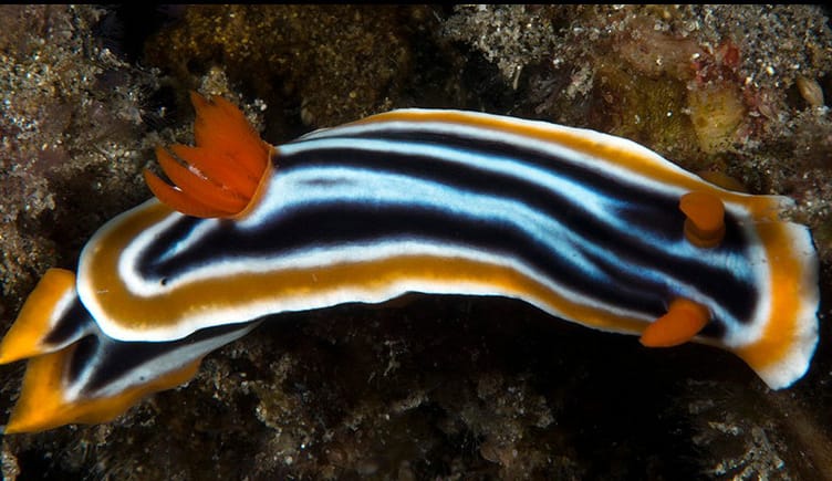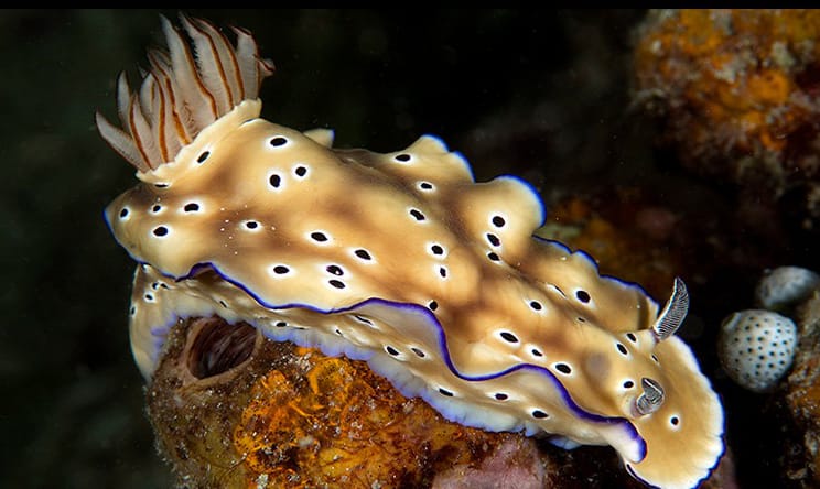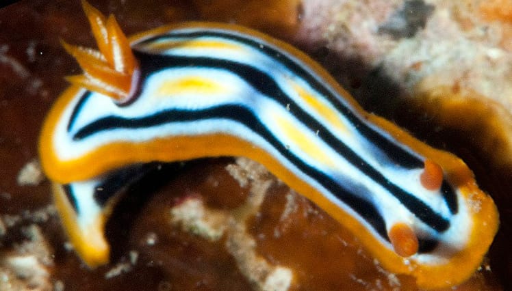 Another feature divers often look for is the dorsal gills carried by many nudibranchs on their back. But here again there are exceptions. In several groups the gills are hidden under the mantle, so they may not be visible at all.