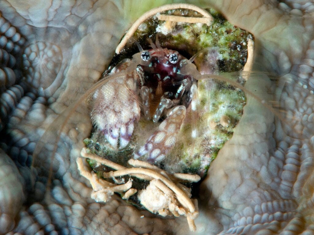 The Paguritta hermit crab is one of the most overlooked subjects in underwater macro photography. While divers often focus on nudibranchs, this tiny coral-dwelling crustacean reveals an entirely different side of reef life.